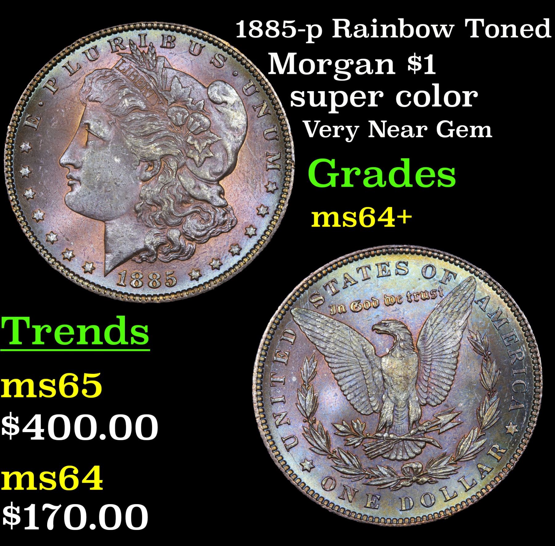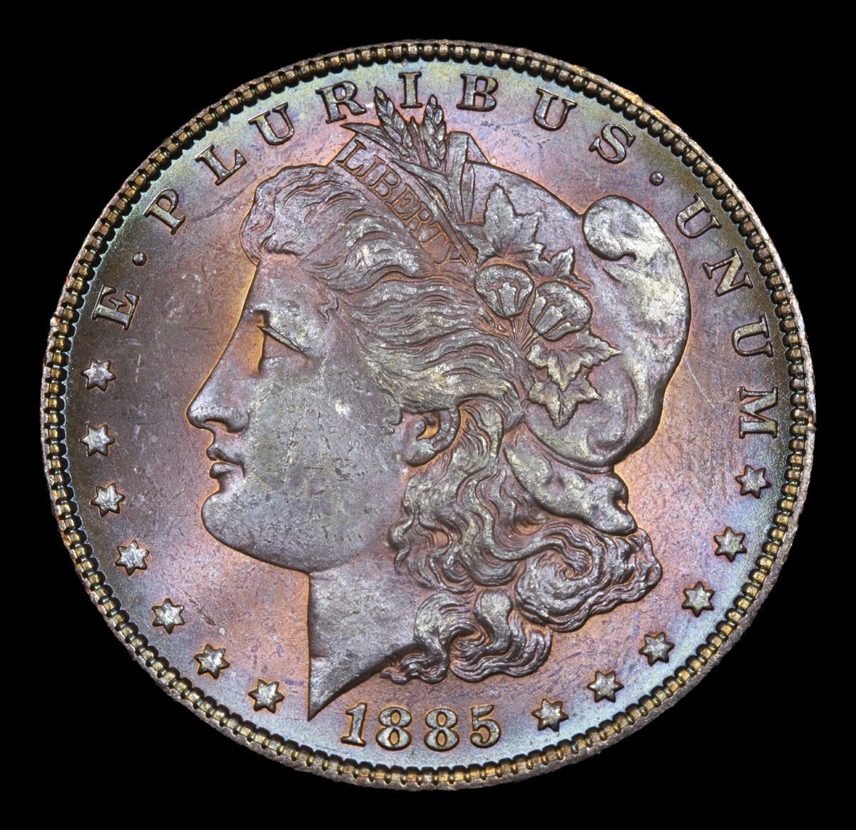 1885-p Rainbow Toned Morgan Dollar $1 Grades Choice+ Unc.