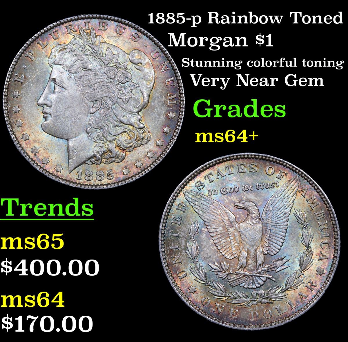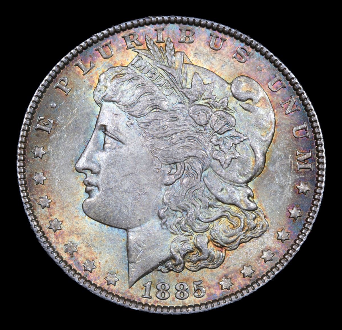 1885-p Rainbow Toned Morgan Dollar $1 Grades Choice+ Unc. A Corey's Pick
