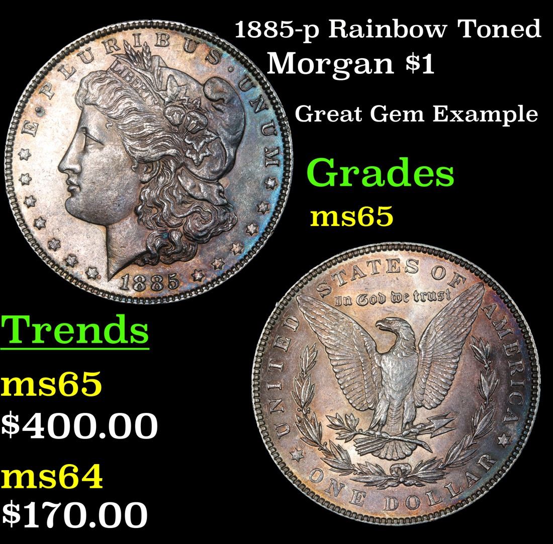 1885-p Rainbow Toned . Great Gem Example Morgan Dollar $1 Grades GEM Unc. A Corey's Pick, Bid to Win, Don't let it get Away Coin
