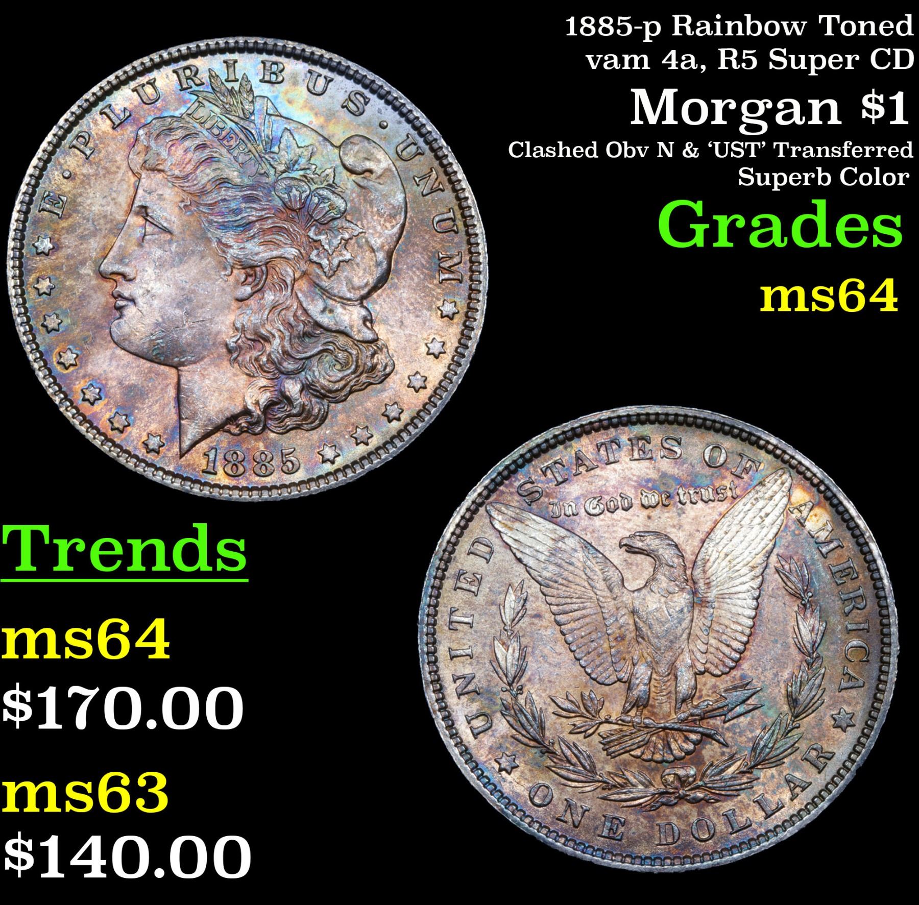 1885-p Rainbow Toned vam 4a, R5 Super CD Morgan Dollar $1 Grades Choice Unc.