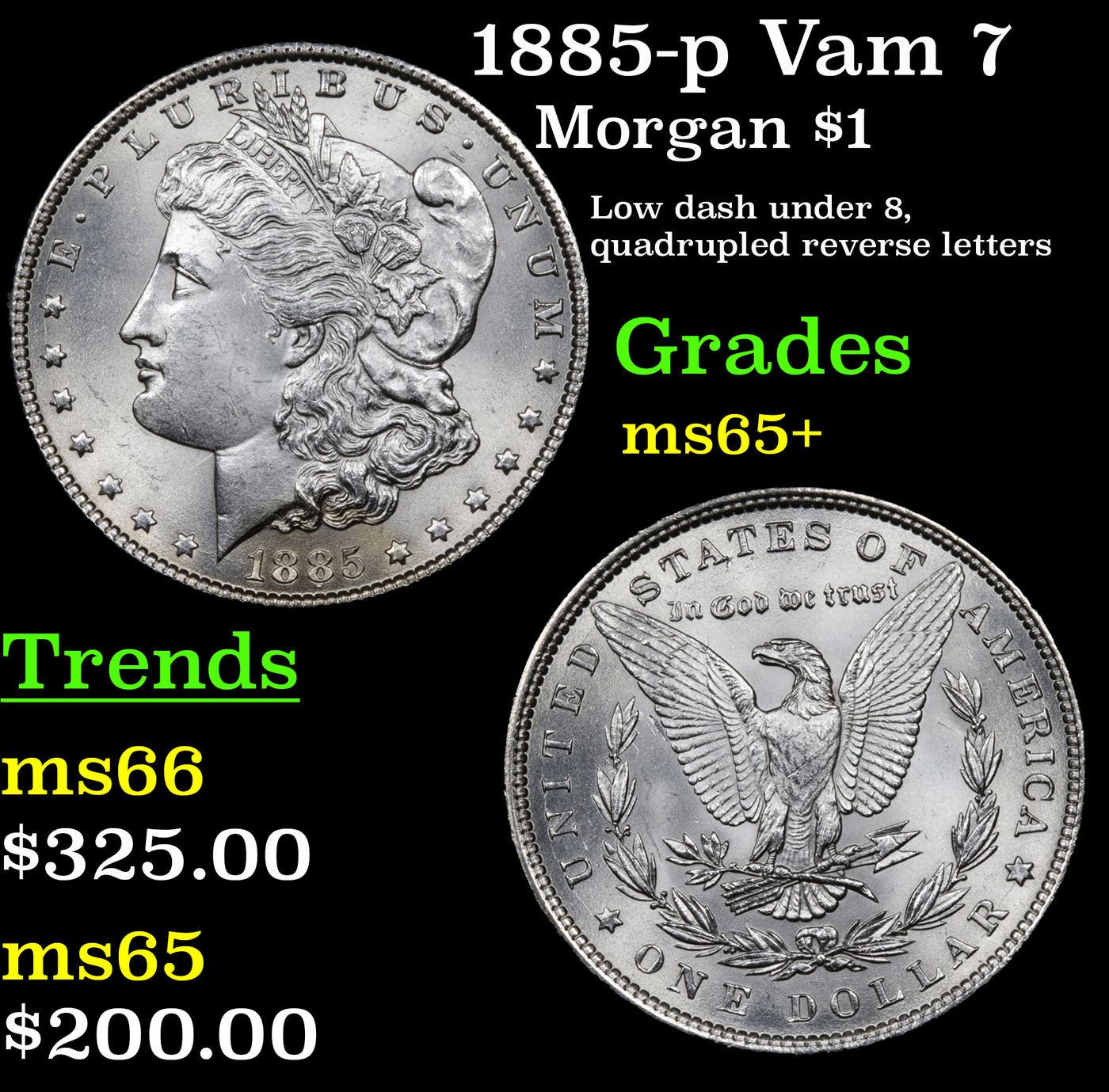 1885-p Vam 7 Morgan Dollar $1 Grades GEM+ Unc.