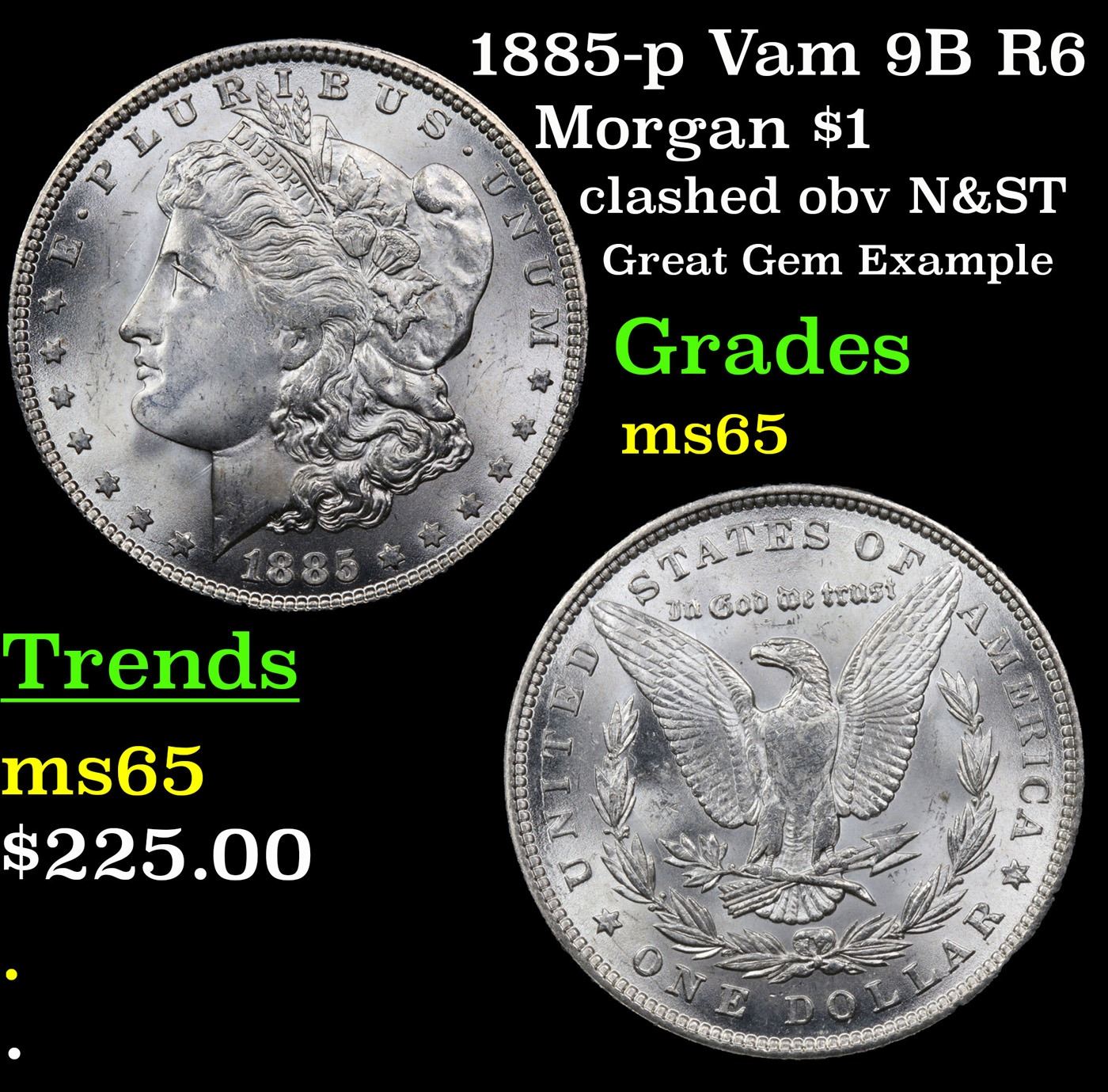 1885-p Vam 9B R6 Morgan Dollar $1 Grades GEM Unc.