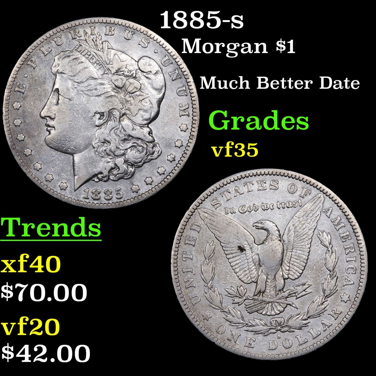 1885-s Morgan Dollar $1 Grades vf++.