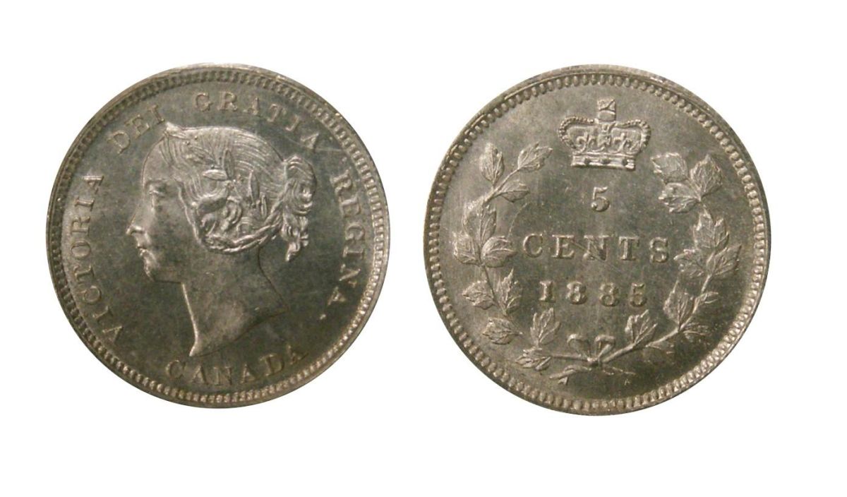 1885 small 5 5¢ ICCS MS64PQ. Wow! Wow! An amazing Victoria five cent silver example.