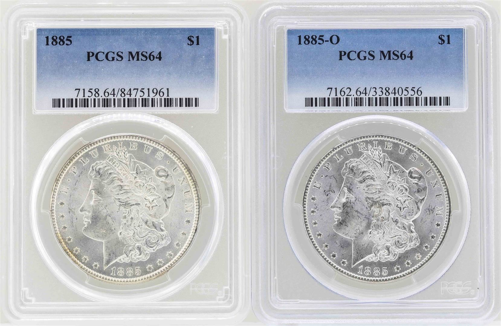 One 1885 to 1885-O $1 Morgan Silver Dollar Coins PCGS MS64. PCGS Graded.