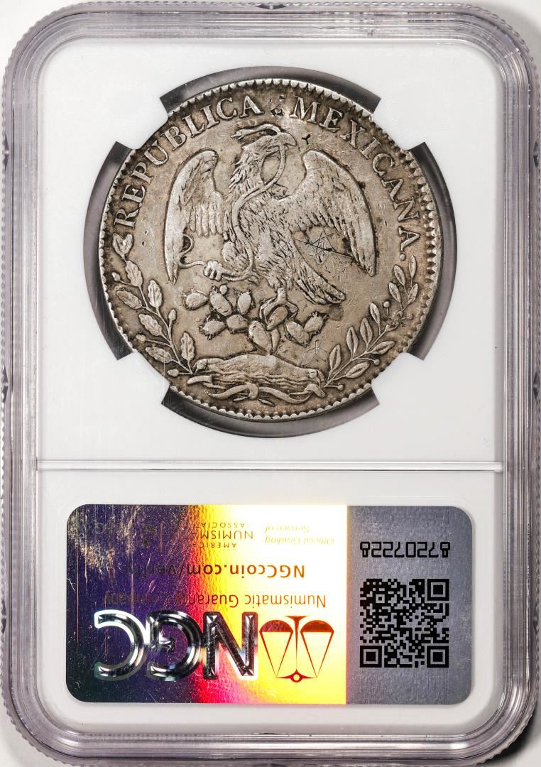 One 1885DO MC Mexico 8 Reales Silver Coin NGC XF Details Chopmarked. NGC Certified.