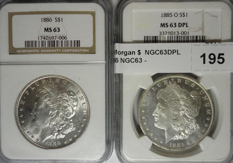 1885O Morgan $ NGC63DPL and 1886 NGC63