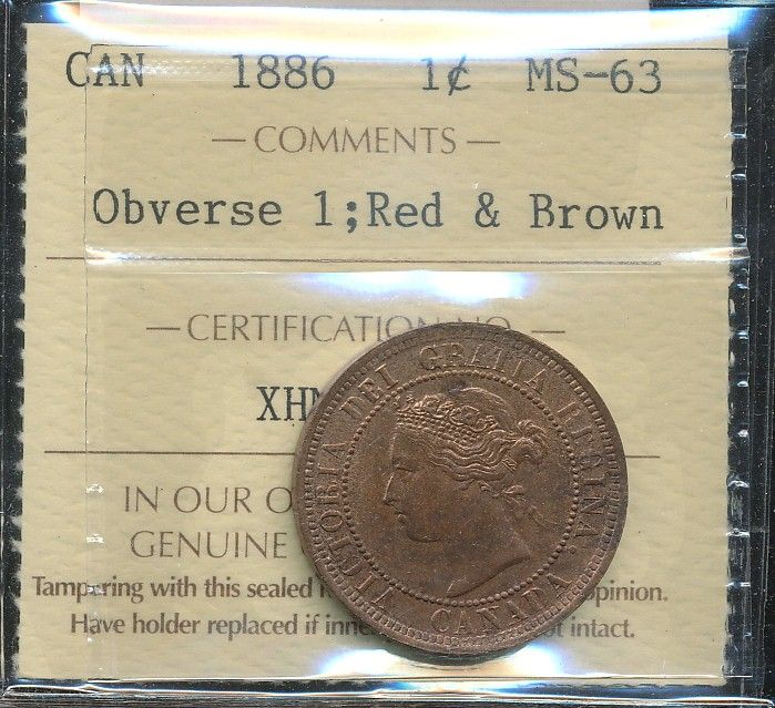 1886 1¢ ICCS MS63RB. Obv 1 type.