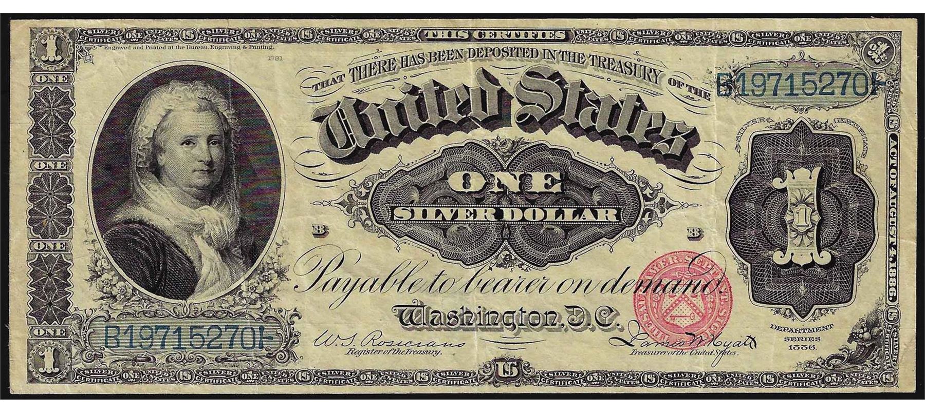 One 1886 $1 Martha Washington Silver Certificate Note.