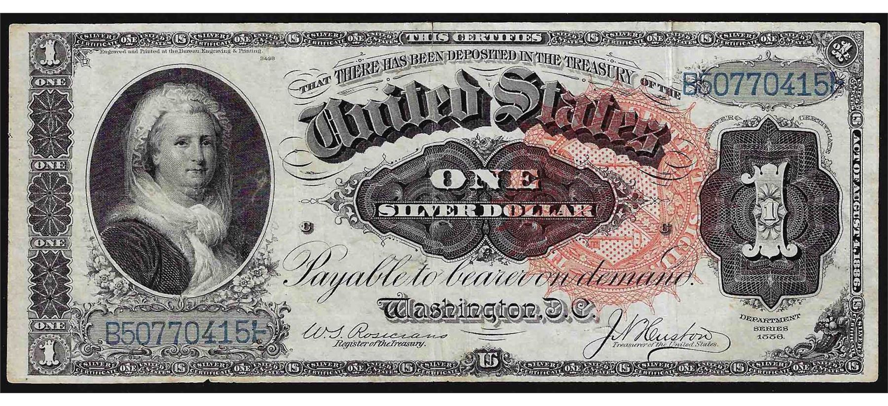 One 1886 $1 Martha Washington Silver Certificate Note.