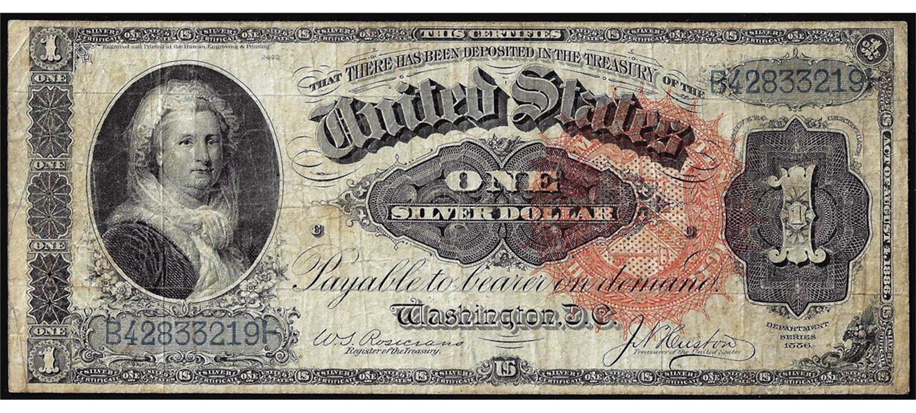 One 1886 $1 Martha Washington Silver Certificate Note.