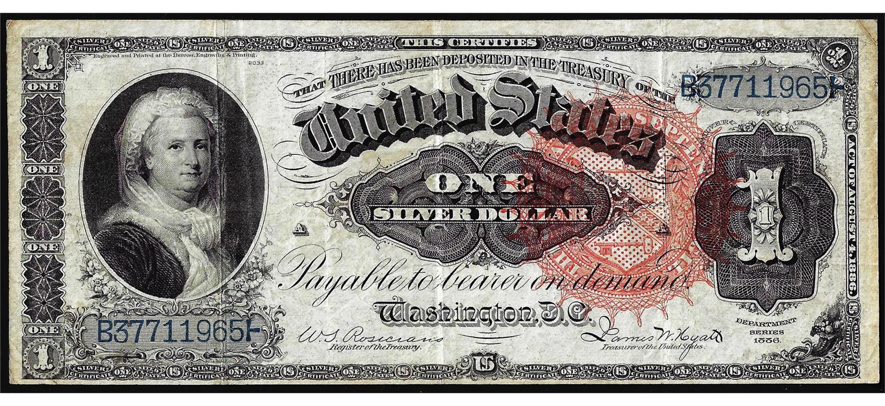 One 1886 $1 Martha Washington Silver Certificate Note.