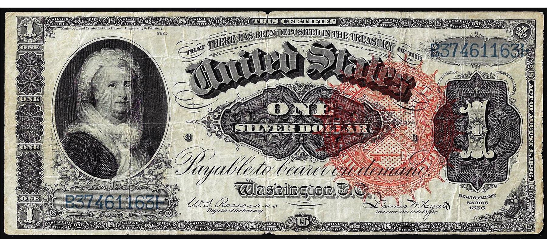 One 1886 $1 Martha Washington Silver Certificate Note.