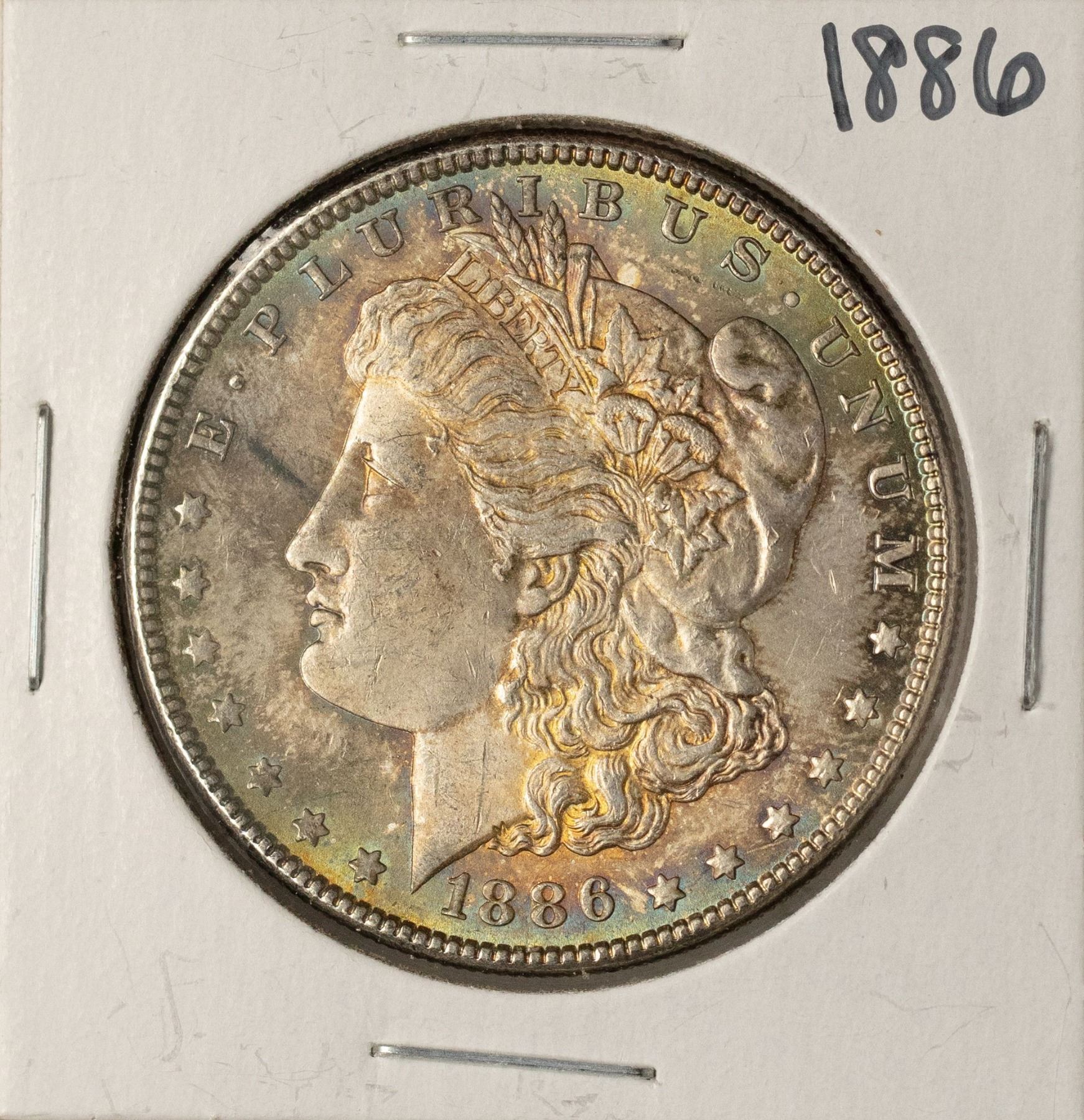 One 1886 $1 Morgan Silver Dollar Coin Amazing Toning.