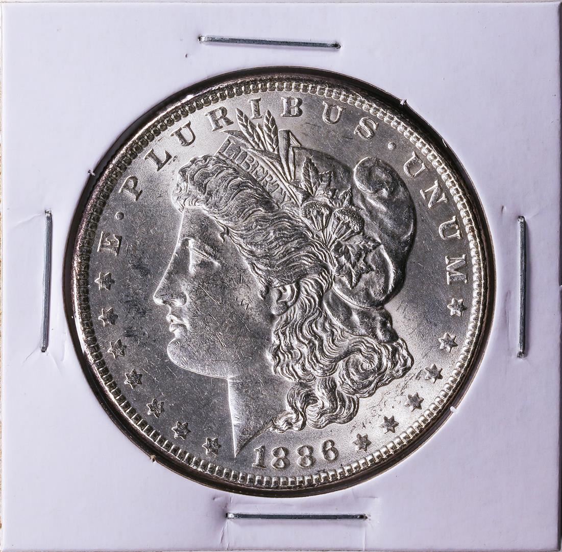 One 1886 $1 Morgan Silver Dollar Coin CH BU+.