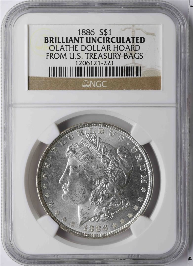 One 1886 $1 Morgan Silver Dollar Coin NGC Brilliant Uncirculated. NGC Certified.