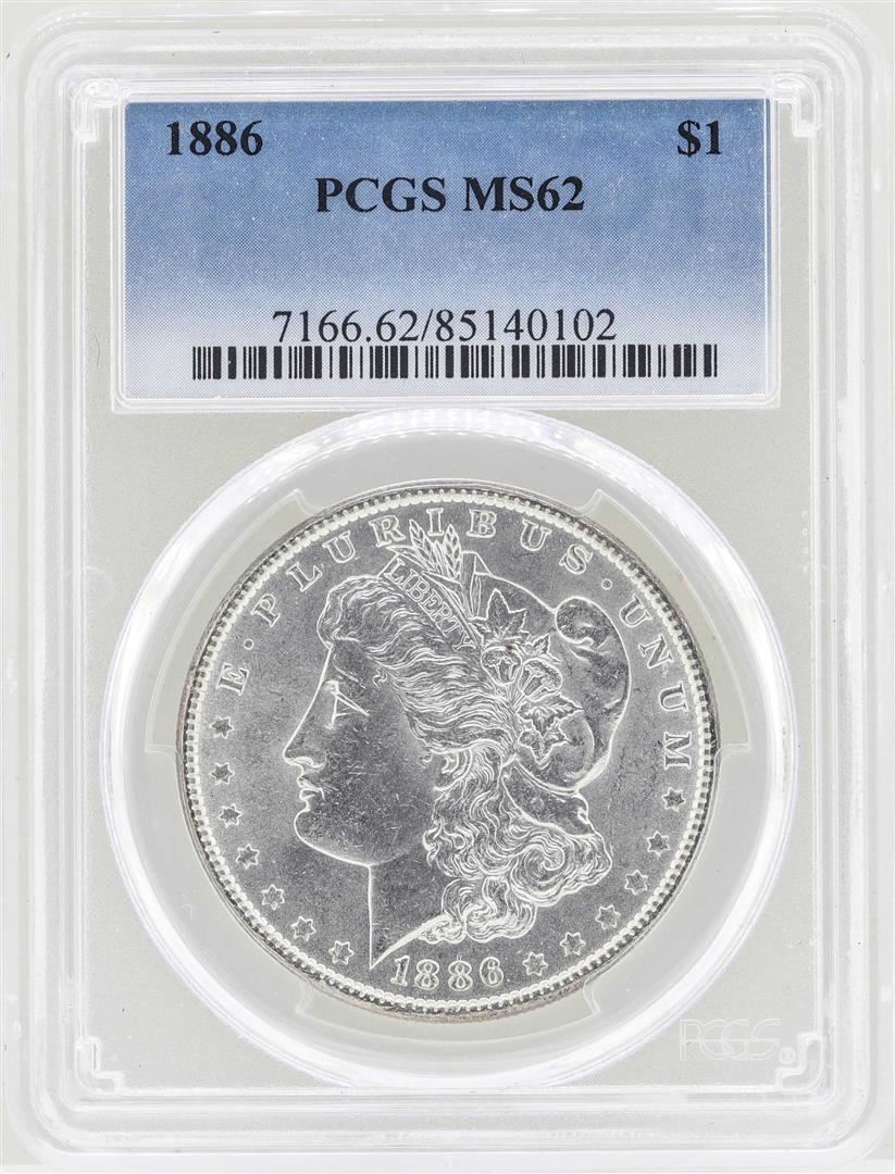 One 1886 $1 Morgan Silver Dollar Coin NGC MS62. NGC Certified.