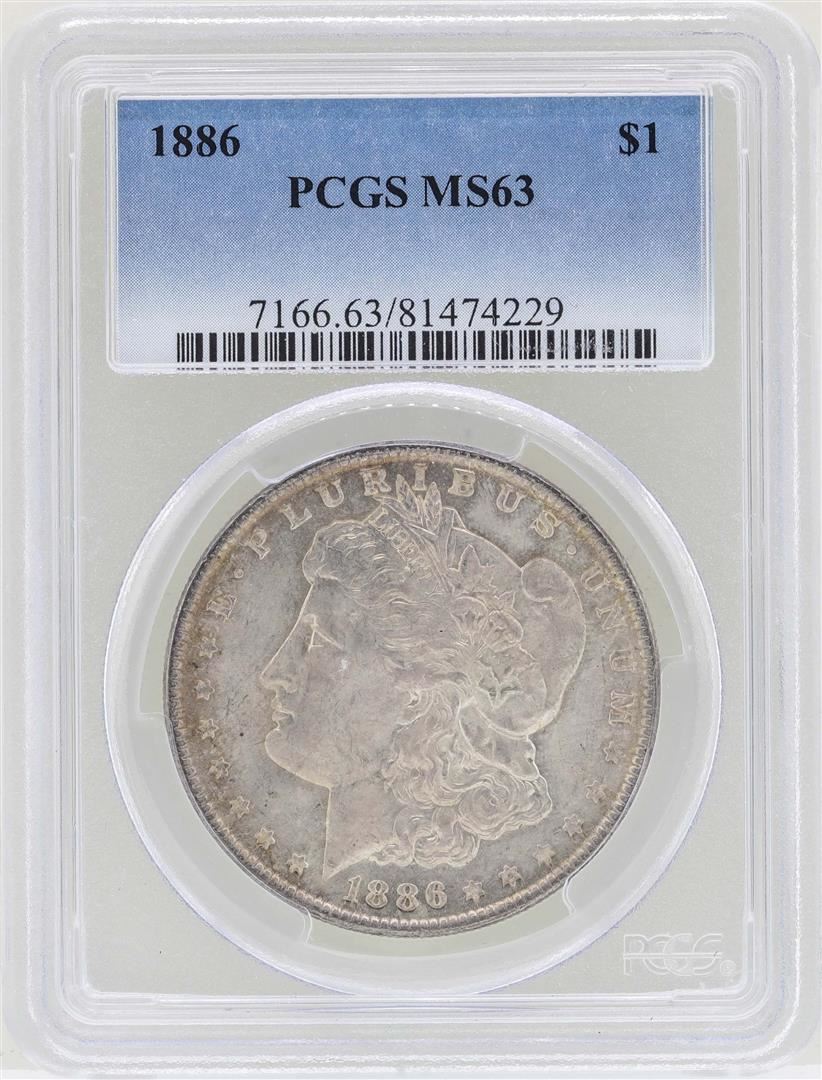 One 1886 $1 Morgan Silver Dollar Coin NGC MS63. NGC Certified.