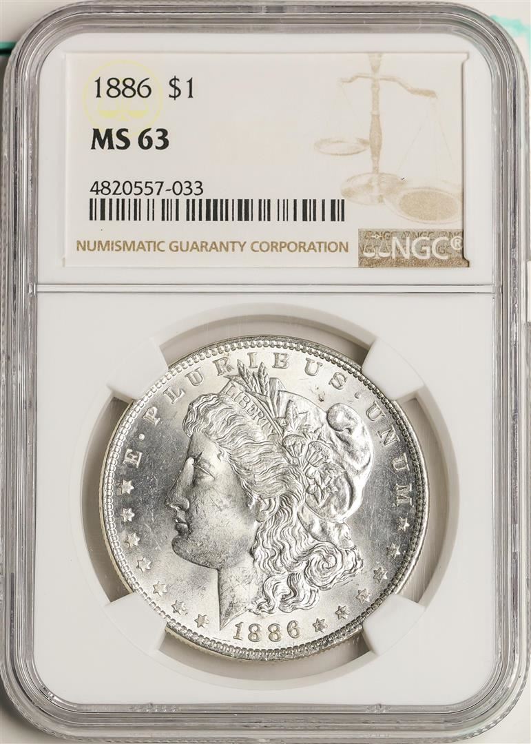 One 1886 $1 Morgan Silver Dollar Coin NGC MS63. NGC Certified.