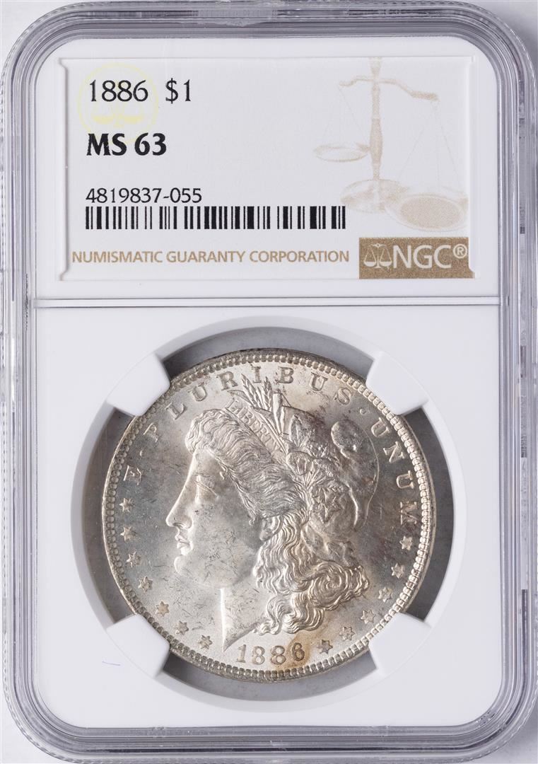 One 1886 $1 Morgan Silver Dollar Coin NGC MS63. NGC Certified.