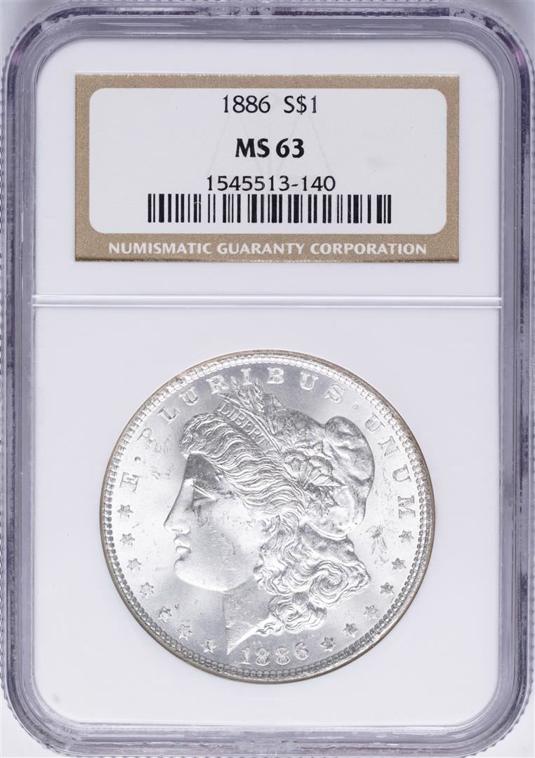One 1886 $1 Morgan Silver Dollar Coin NGC MS63. NGC Certified.