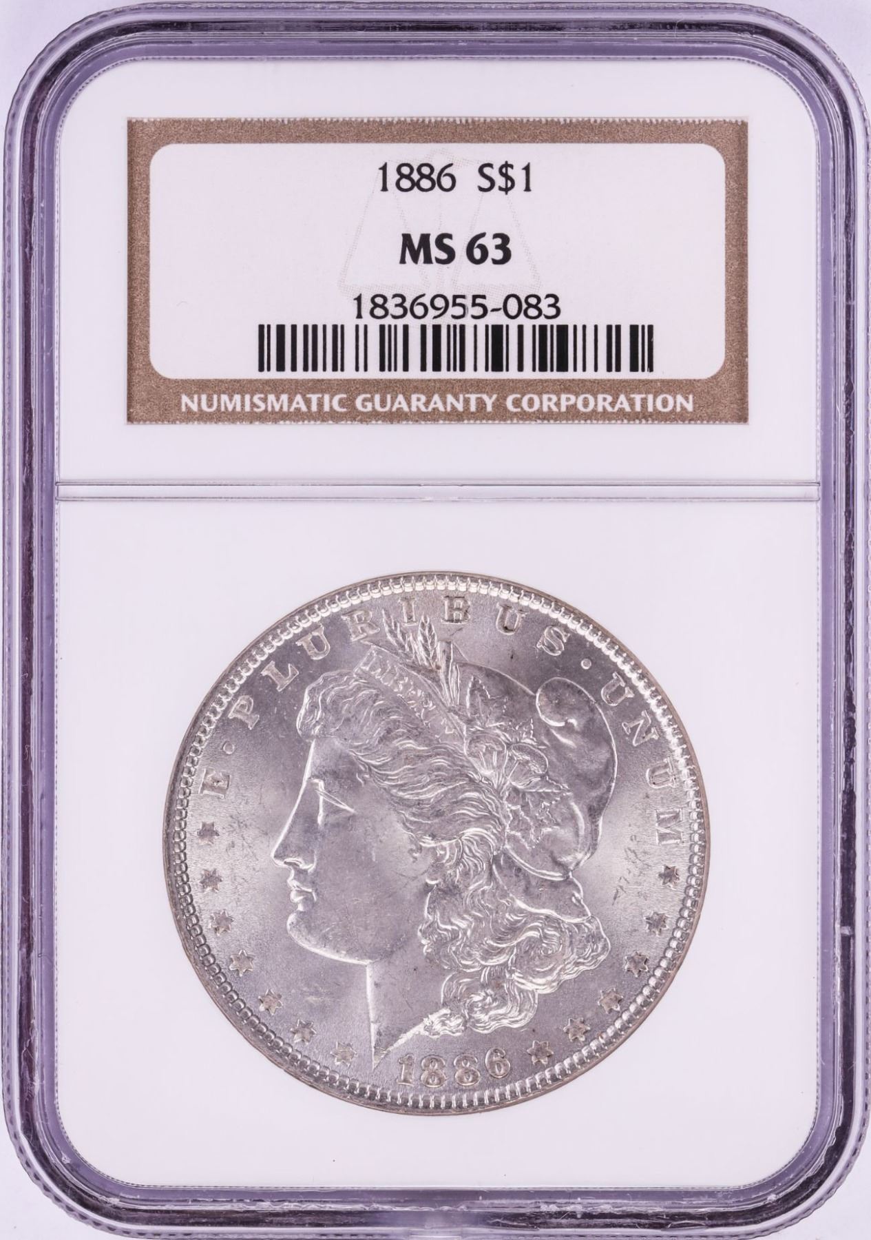 One 1886 $1 Morgan Silver Dollar Coin NGC MS63.