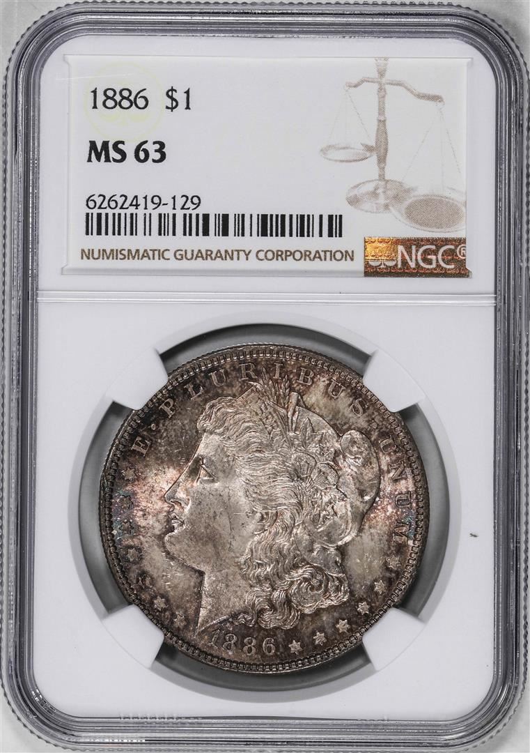 One 1886 $1 Morgan Silver Dollar Coin NGC MS63. NGC Certified.