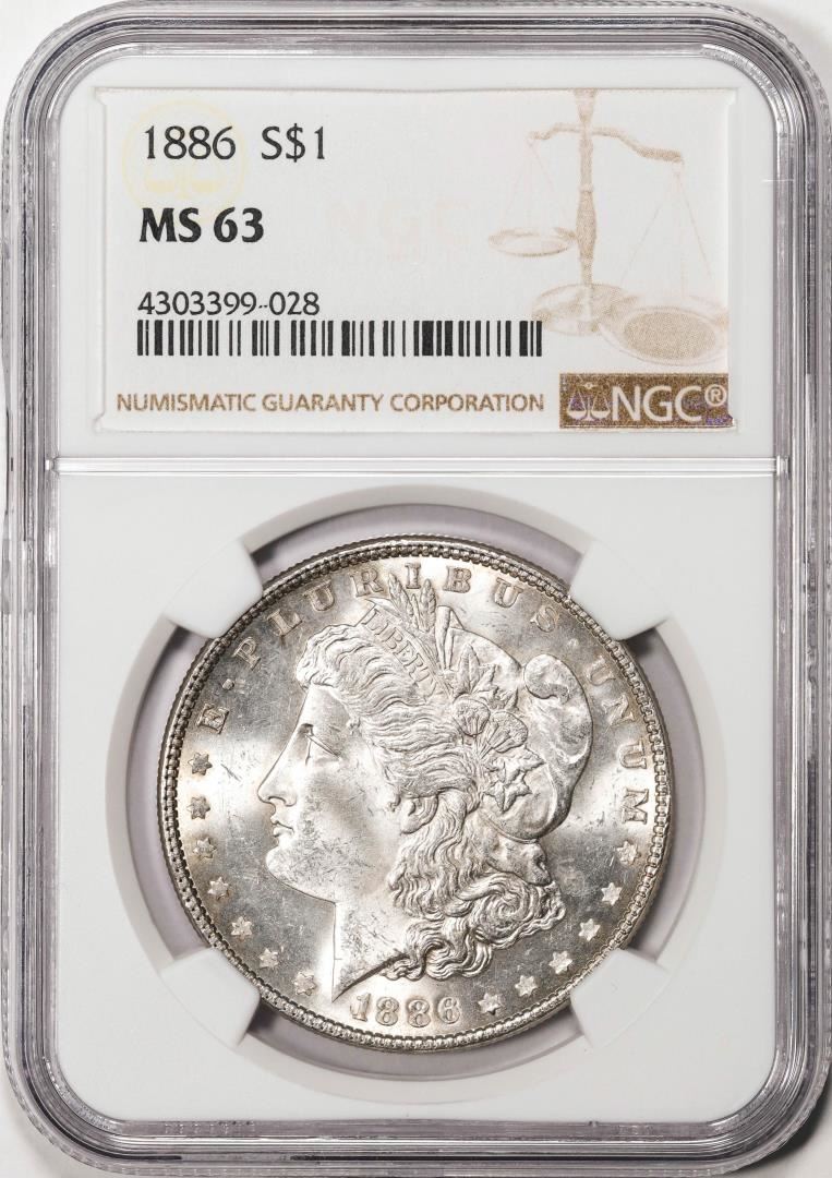 One 1886 $1 Morgan Silver Dollar Coin NGC MS63. NGC Certified.