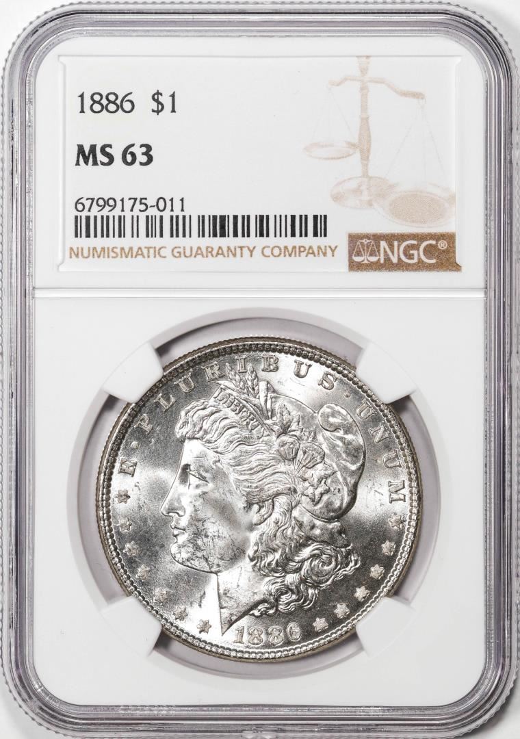 One 1886 $1 Morgan Silver Dollar Coin NGC MS63. NGC Certified.