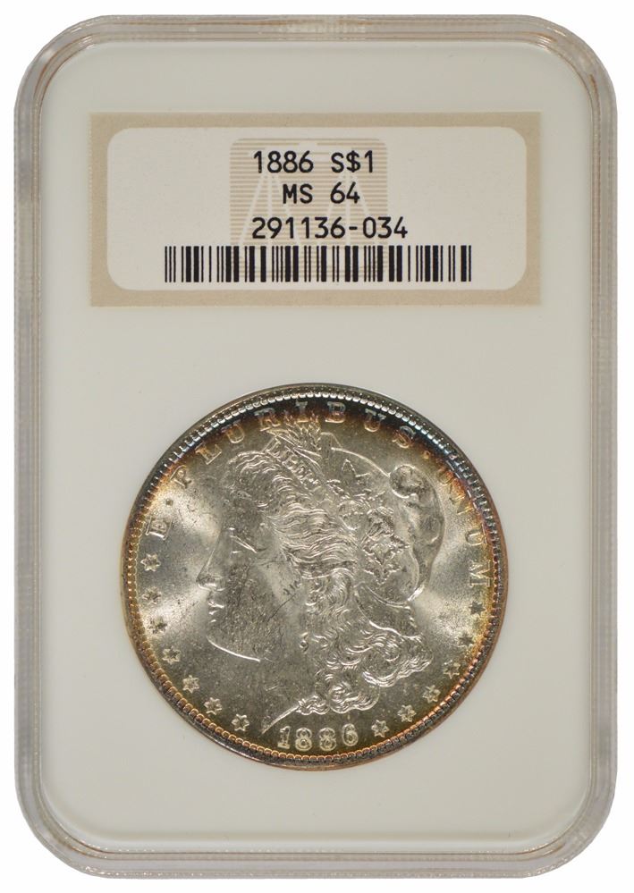 One 1886 $1 Morgan Silver Dollar Coin NGC MS64.
