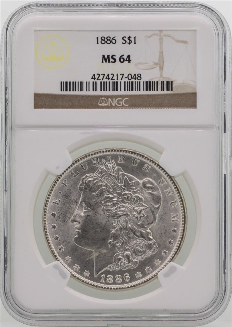 One 1886 $1 Morgan Silver Dollar Coin NGC MS64. NGC Certified.