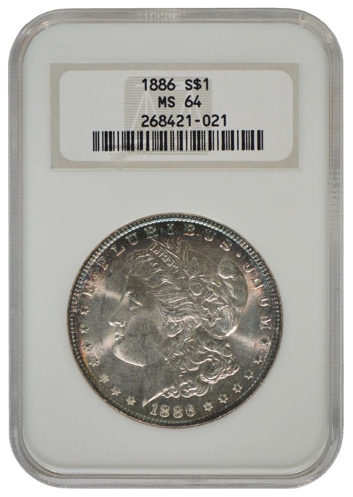 One 1886 $1 Morgan Silver Dollar Coin NGC MS64.