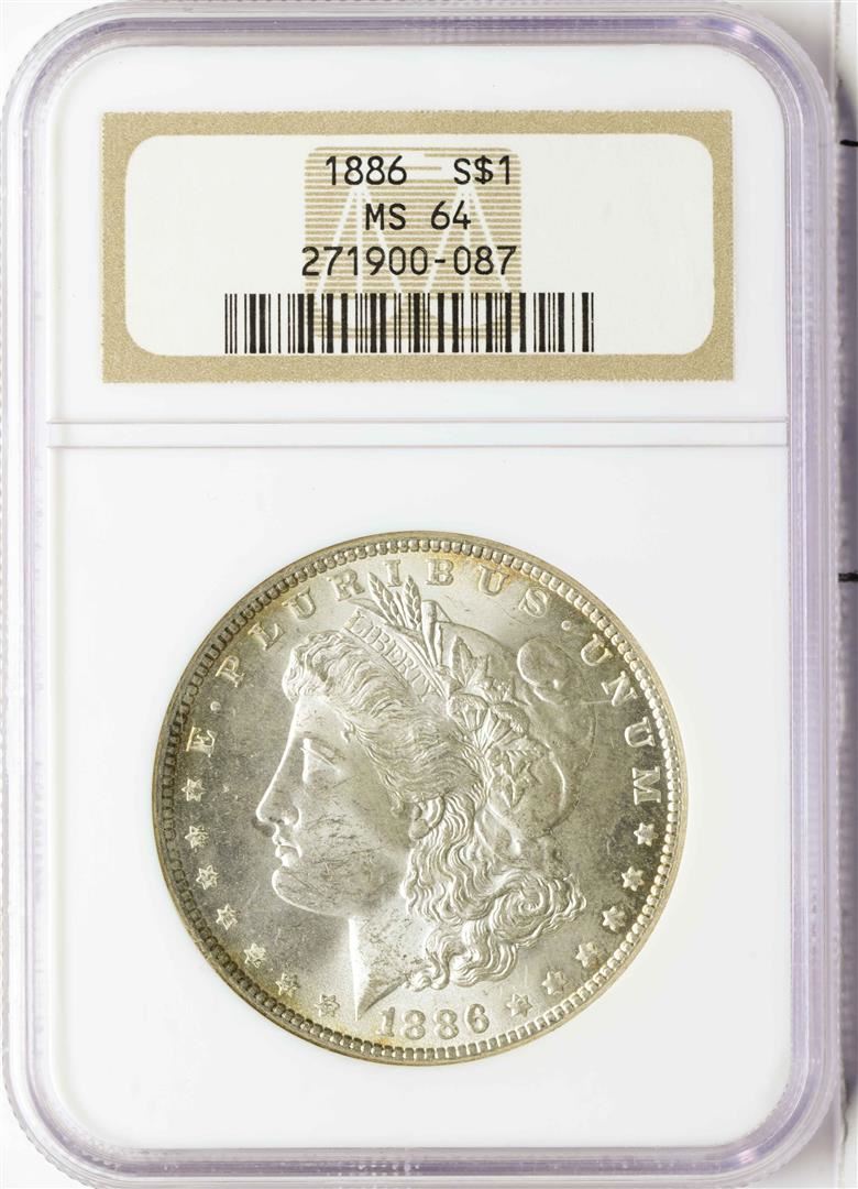 One 1886 $1 Morgan Silver Dollar Coin NGC MS64. NGC Certified.