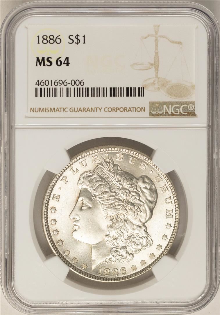 One 1886 $1 Morgan Silver Dollar Coin NGC MS64. NGC Certified.