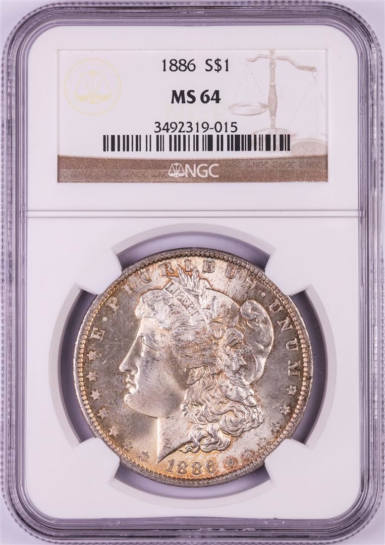 One 1886 $1 Morgan Silver Dollar Coin NGC MS64. NGC Certified.