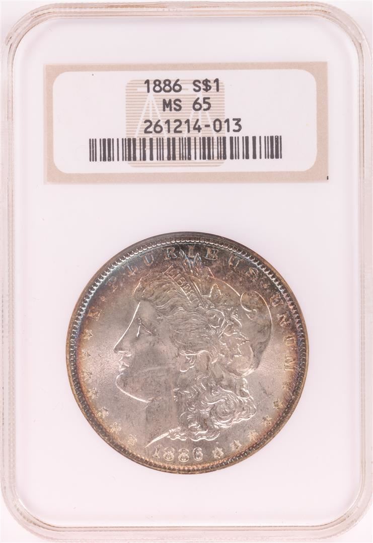 1886 $1 Morgan Silver Dollar Coin NGC MS65 Nice Toning Old Holder