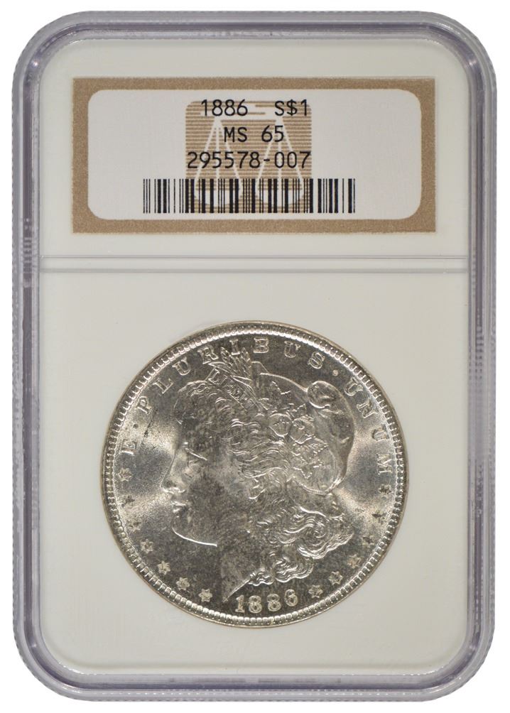 One 1886 $1 Morgan Silver Dollar Coin NGC MS65.