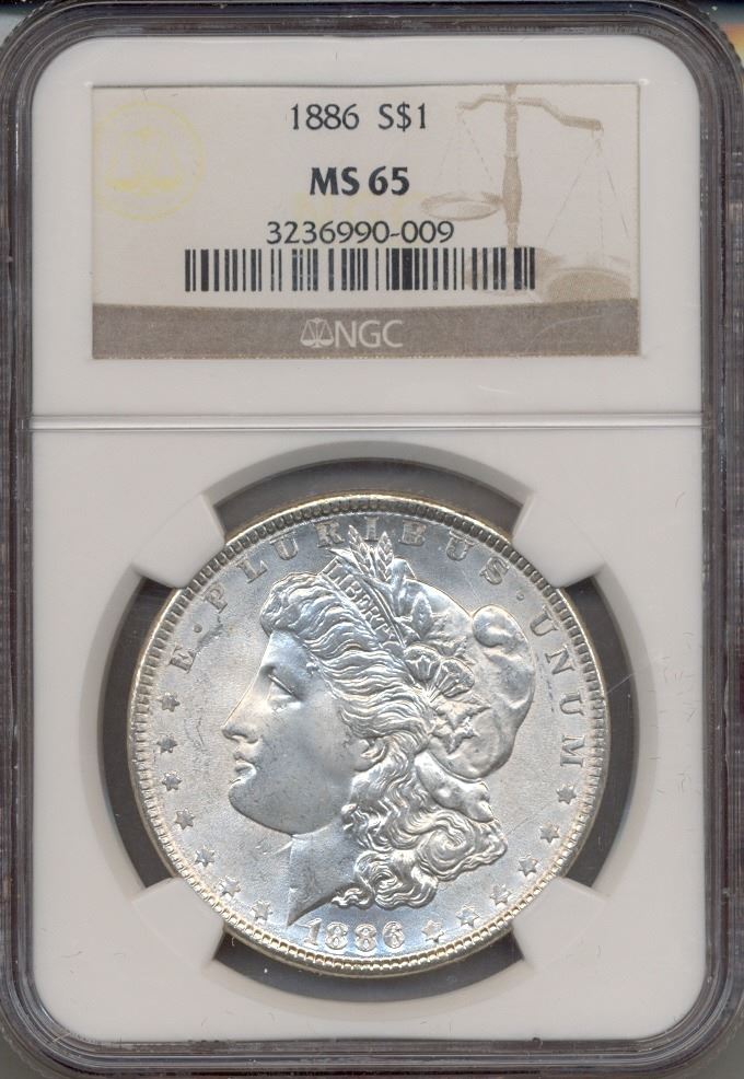 One 1886 $1 Morgan Silver Dollar Coin NGC MS65.