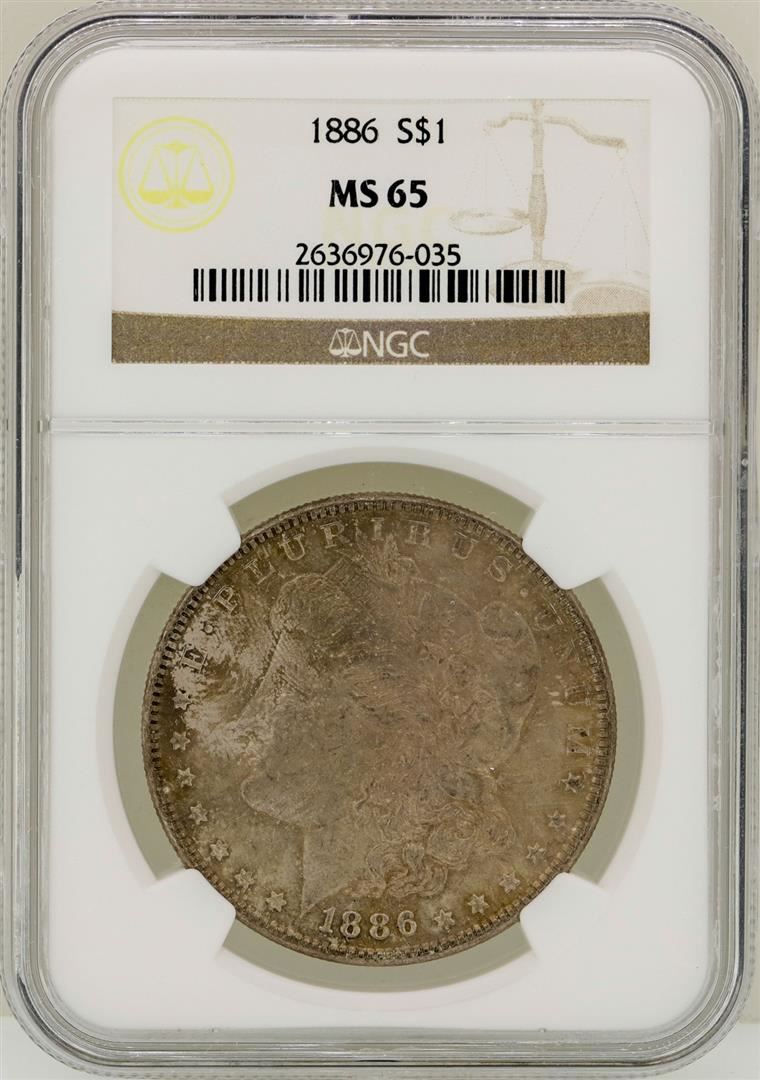 One 1886 $1 Morgan Silver Dollar Coin NGC MS65. NGC Certified.