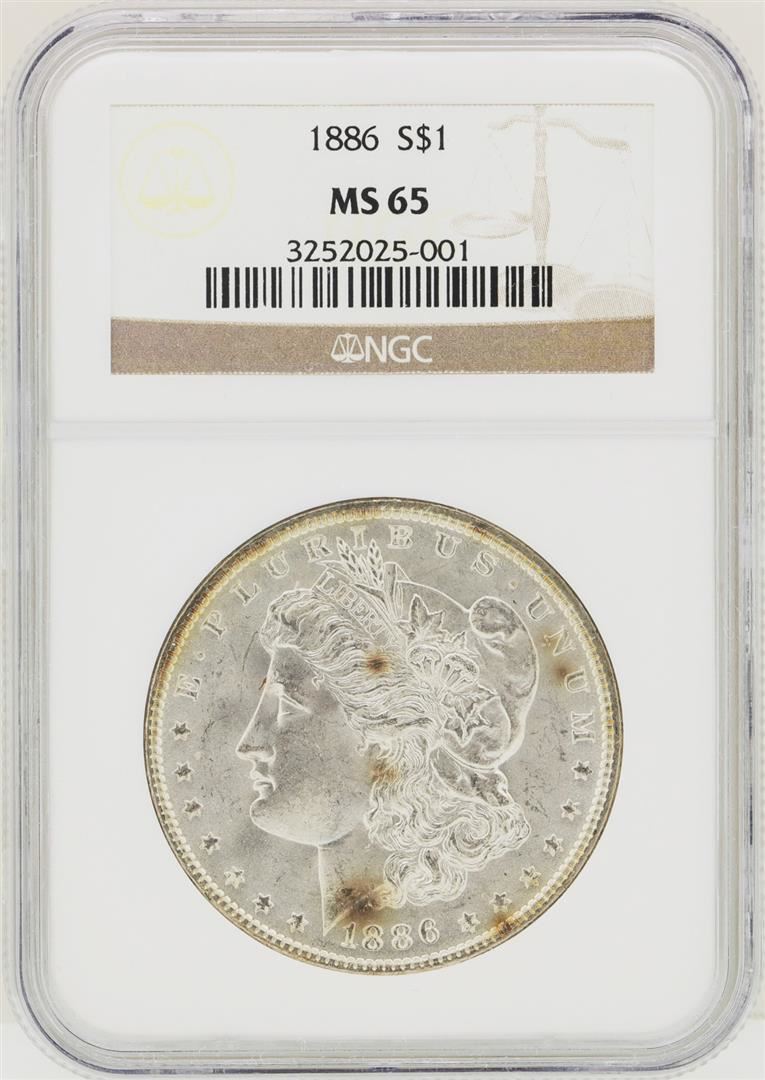 One 1886 $1 Morgan Silver Dollar Coin NGC MS65. NGC Certified.