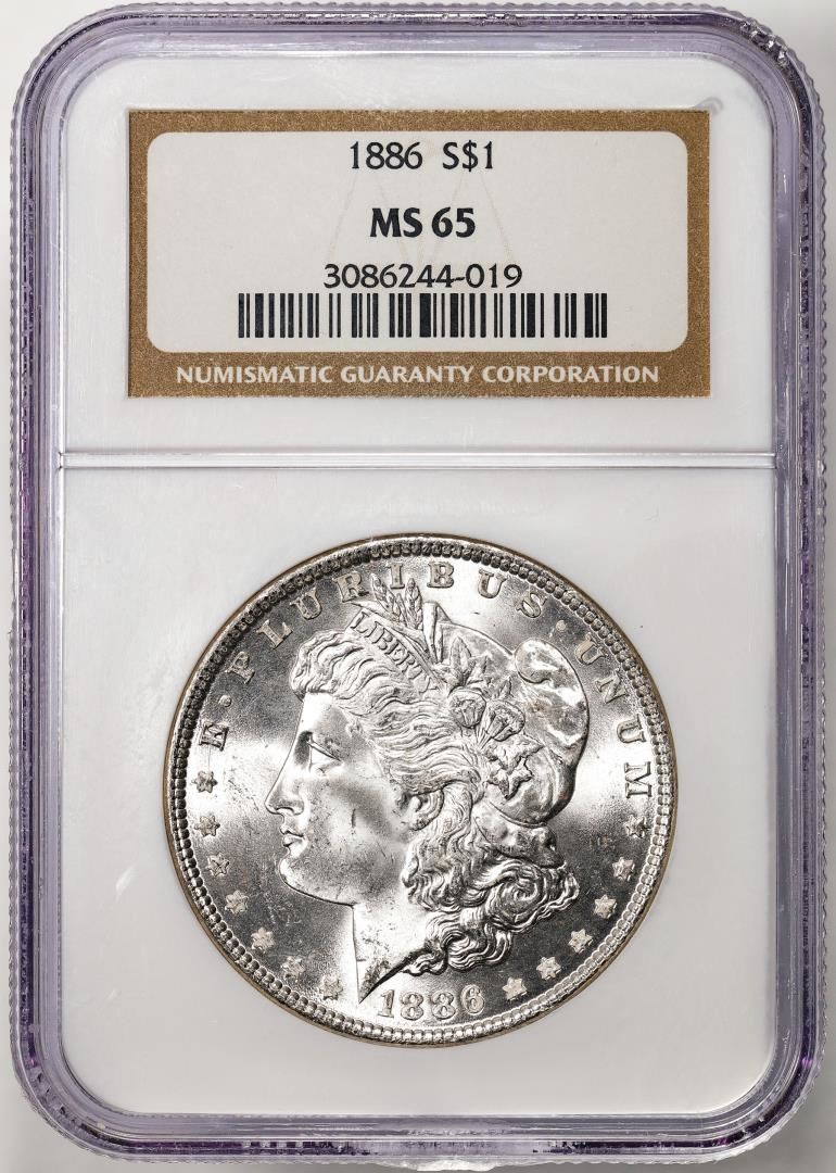 One 1886 $1 Morgan Silver Dollar Coin NGC MS65. NGC Certified.