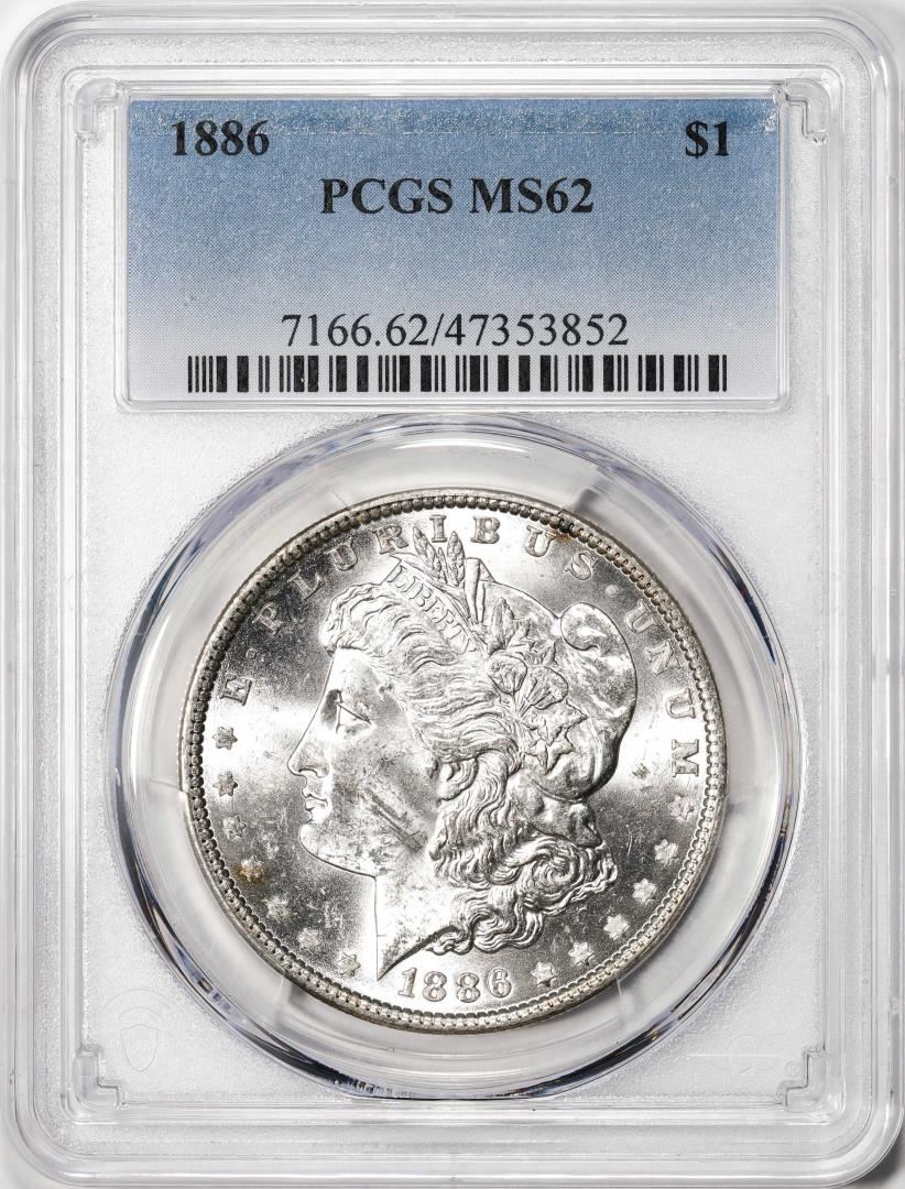 One 1886 $1 Morgan Silver Dollar Coin PCGS MS62. PCGS Graded.