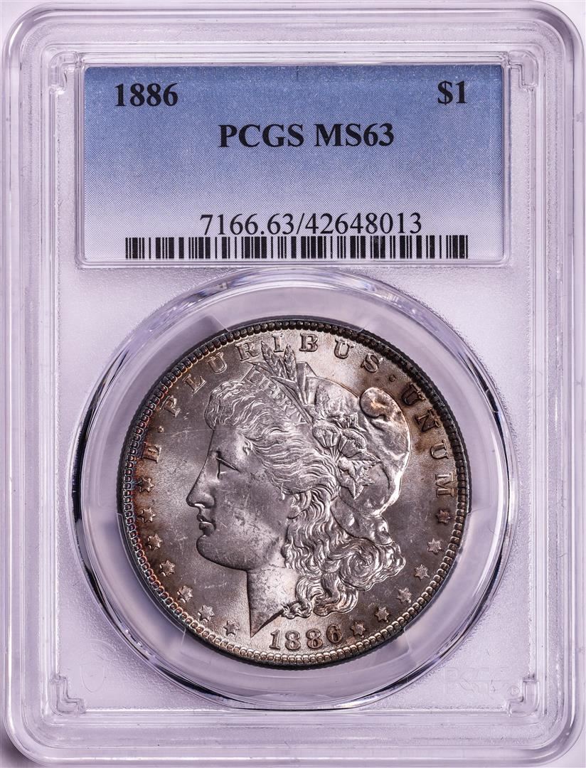 One 1886 $1 Morgan Silver Dollar Coin PCGS MS63 Nice Toning. PCGS Graded.