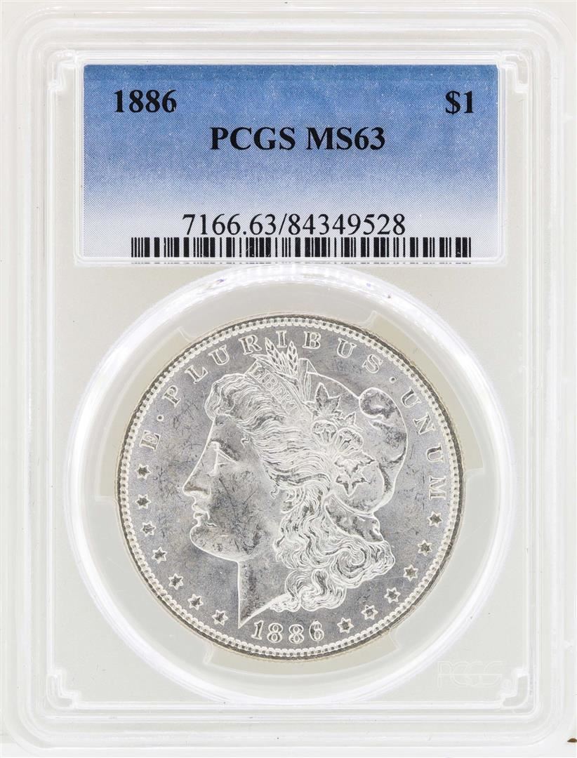 One 1886 $1 Morgan Silver Dollar Coin PCGS MS63. PCGS Graded.