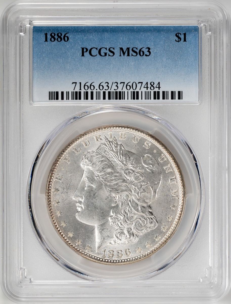 One 1886 $1 Morgan Silver Dollar Coin PCGS MS63.