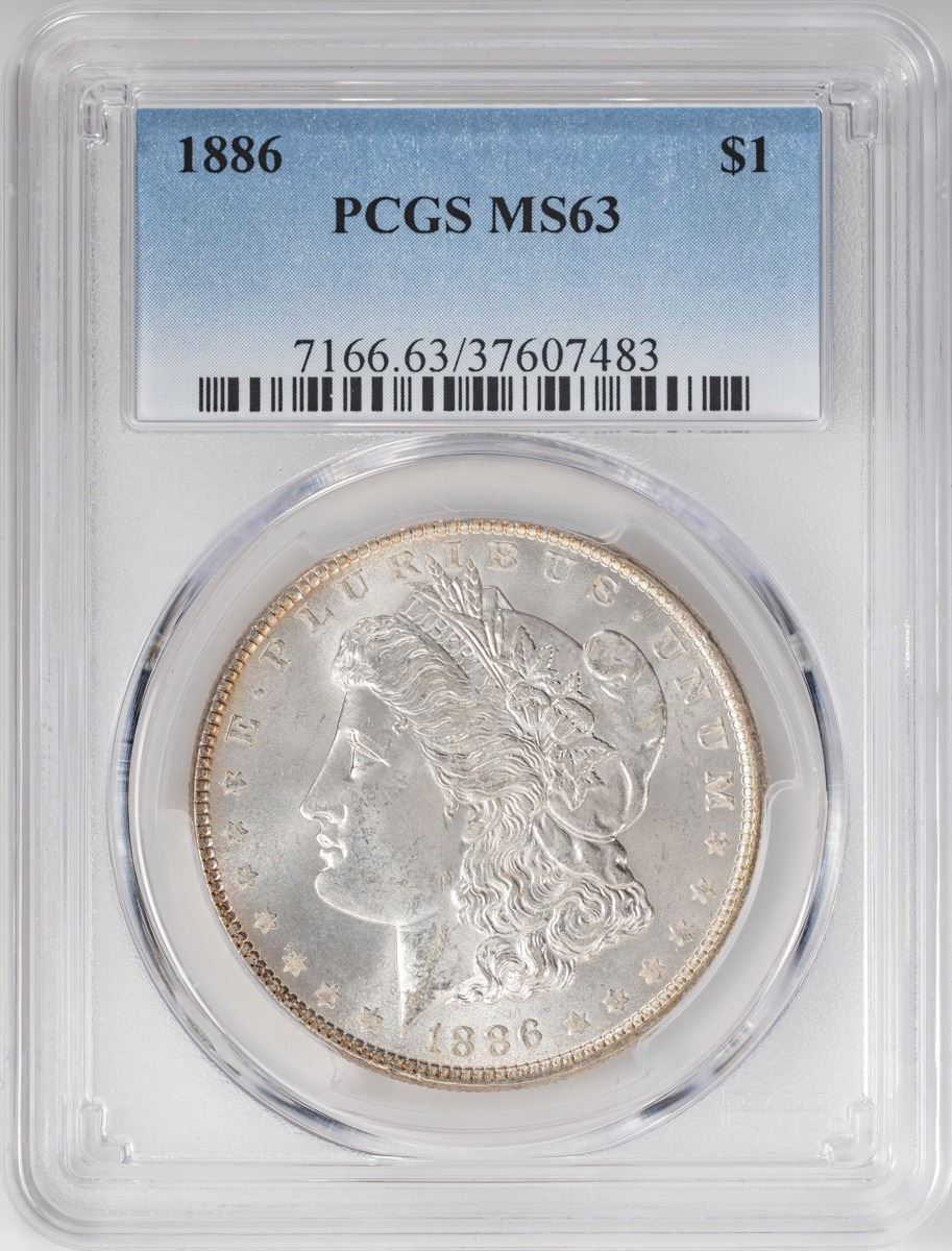 One 1886 $1 Morgan Silver Dollar Coin PCGS MS63.