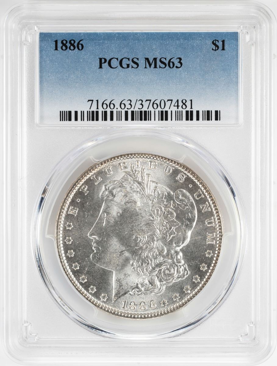 One 1886 $1 Morgan Silver Dollar Coin PCGS MS63.