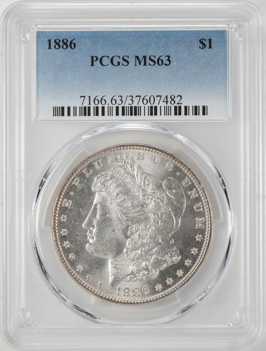 One 1886 $1 Morgan Silver Dollar Coin PCGS MS63.