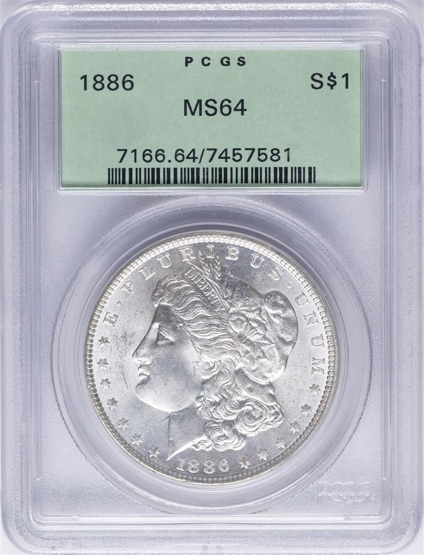 One 1886 $1 Morgan Silver Dollar Coin PCGS MS63. PCGS Graded.