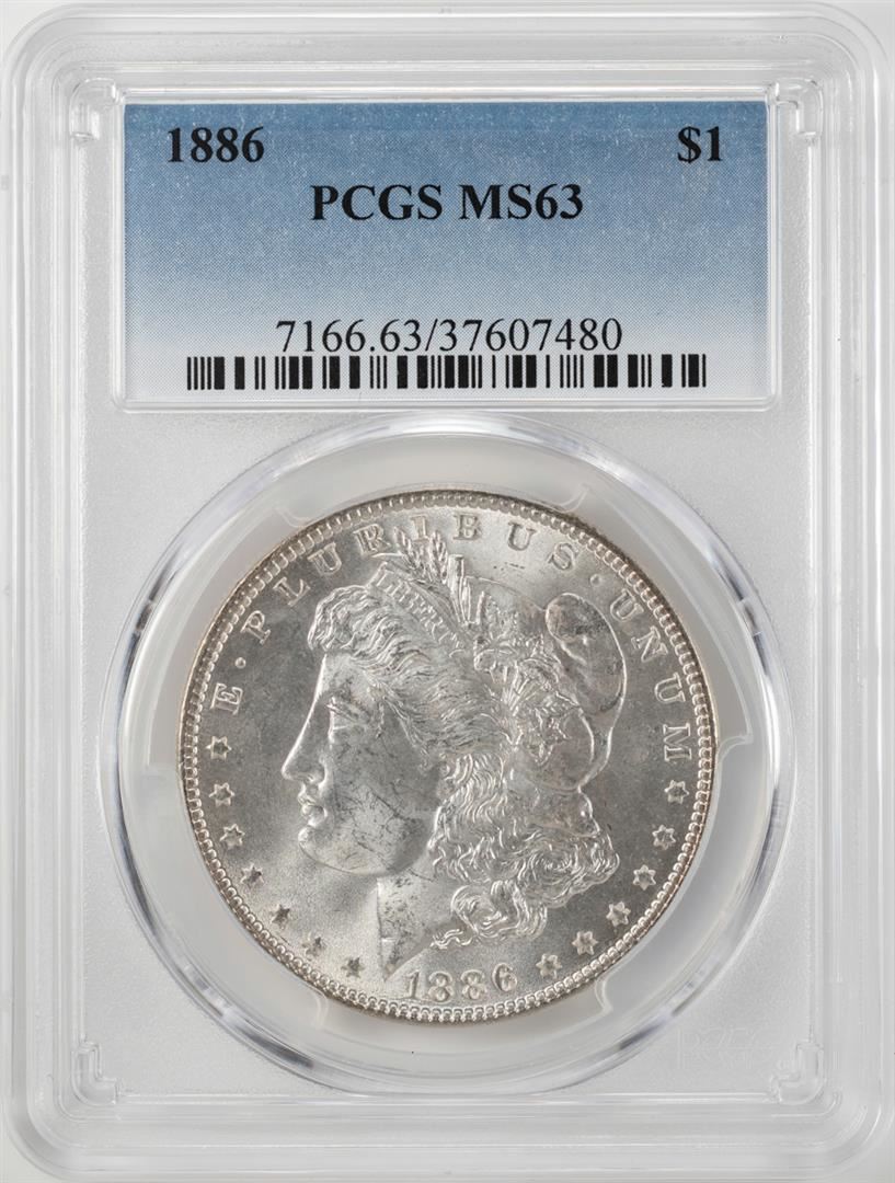 One 1886 $1 Morgan Silver Dollar Coin PCGS MS63. PCGS Graded.